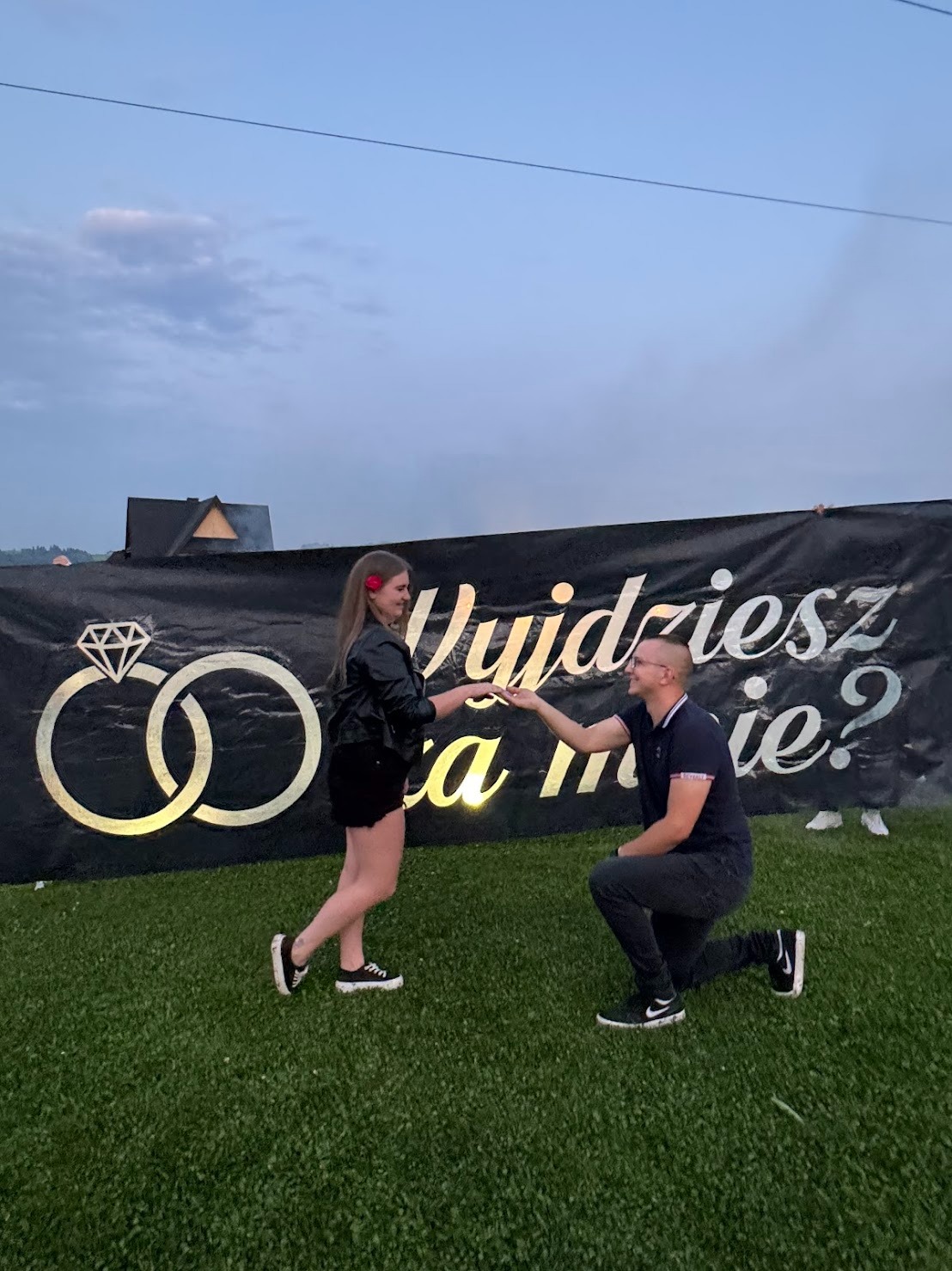 Poniżej zobaczysz nasze realizacje kreatywnych zaręczyn — w różnych miejscach, stylach i aranżacjach. Każde ujęcie pokazuje inną historię miłości, inny pomysł i inne emocje. Znajdź inspirację dla swojej chwili „Wyjdziesz za mnie?” i zobacz, jak może wyglądać Wasz moment z pirobanerem.