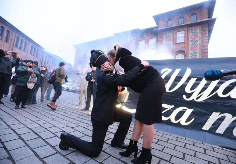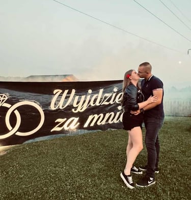 Wyjątkowy baner, który zamienia oświadczyny w magiczny moment. W blasku rac i świateł napis „Wyjdziesz za mnie?” tworzy romantyczną scenę pełną emocji, wzruszeń i zachwytu.